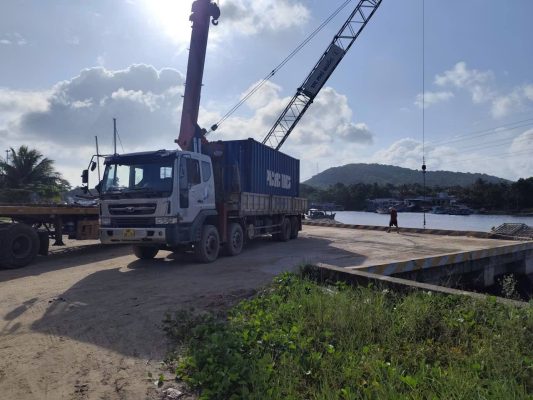 BMT PHU QUOC nhận vận chuyển đi các đảo đường bộ và đường thủy: xe và sà lan, cẩu hạ hàng hóa.