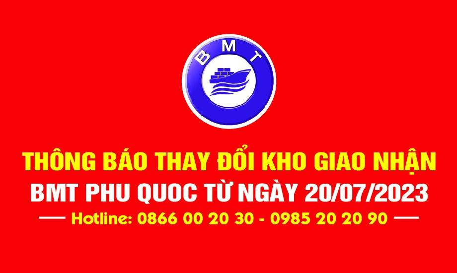 Từ ngày 20/07/2023 BMT Phu Quoc chính thức thay đổi kho giao nhận tại TP.HCM. Hoạt động giao nhận hàng hóa bình thường.
